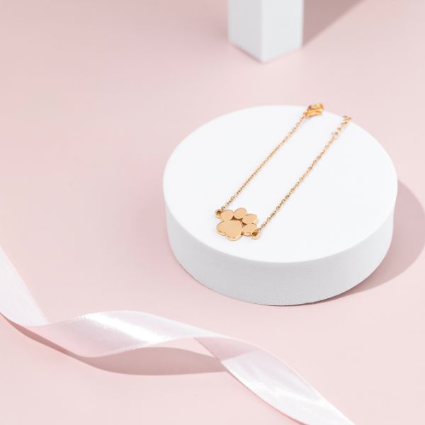Unser Pfötchen-Armband in glänzendem Gold ist eine Hommage an die bedingungslose Liebe unserer pelzigen Freunde. Dieses bezaubernde Armband ist mit einem zarten, aber detailreichen Pfötchenanhänger versehen, der die Verbundenheit zwischen Mensch und Tier zelebriert. Es wurde mit Sorgfalt und Präzision gefertigt und verleiht Ihrem Stil einen Hauch von Wärme und Zuneigung. Ob als Erinnerung an Ihr geliebtes Haustier oder als Zeichen des Mitgefühls für Tiere, unser goldfarbenes Pfotenarmband strahlt sowohl Eleganz als auch Sentimentalität aus und ist