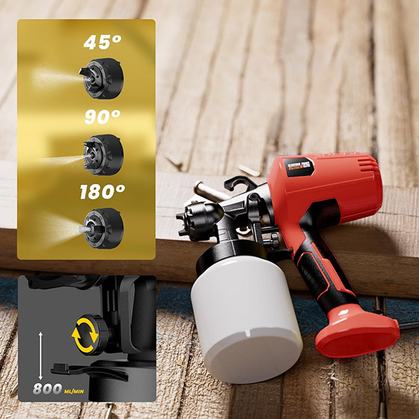 Füllen Sie den 800 ml Tank, drehen Sie ihn auf und fangen Sie an zu streichen – die Einrichtung dauert weniger als 60 Sekunden. Keine Grundierung, kein Verdünnen der Farbe, keine zusätzliche Ausrüstung zu kaufen. Die 2,5 mm Düse liefert einen stetigen, einstellbaren Fluss, sodass Sie vom ersten bis zum letzten Strich die Kontrolle behalten.