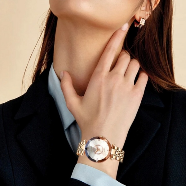 Präzises Quarzwerk: Die SPARKLELIGHT wird von einem elektronischen Antrieb und einem Quarzwerk angetrieben, das nicht nur für eine präzise Zeitmessung sorgt, sondern auch für eine elegante Synchronisierung von Stil und Funktion. Jeder Blick auf dein Handgelenk wird zu einem Moment des raffinierten Luxus.