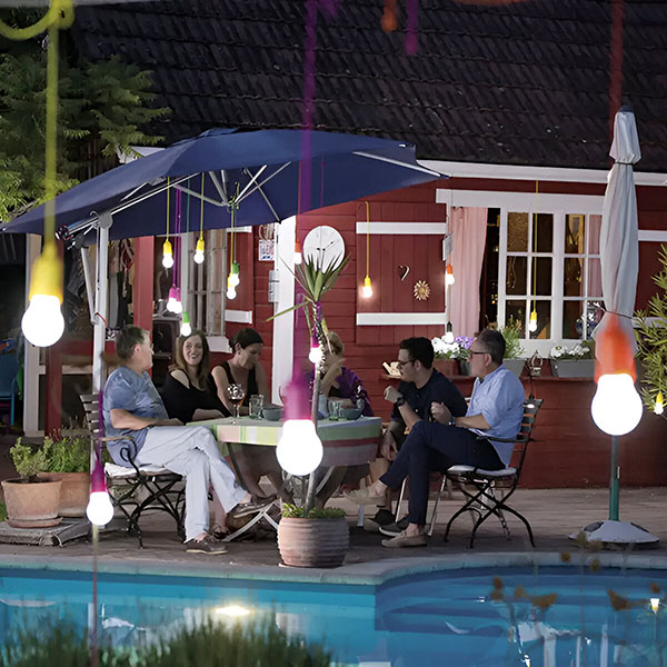 Die aus haltbarem ABS- und PP-Kunststoff mit IPX4-Schutz hergestellten HALOGLO-Glühbirnen sind so konzipiert, dass sie extremer Hitze und Kälte standhalten und das ganze Jahr über verwendet werden können. Die langlebigen Materialien stellen sicher, dass die Lampen den Bedingungen im Freien standhalten, von sonnigen Tagen bis zu regnerischen Nächten.