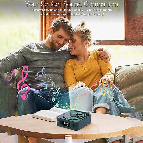 Der Retro-Plattenspieler-Look verleiht Ihrem Schreibtisch oder Nachttisch einen Hauch von klassischem Stil.