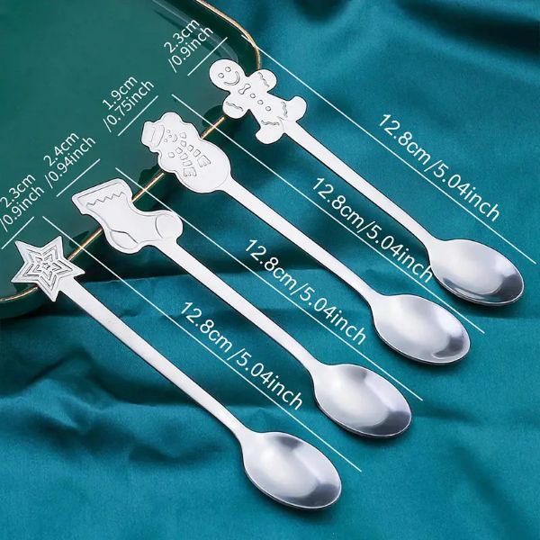 📦 Das Paket enthält: 4x Weihnachts-Teelöffel (Silber Finish)
